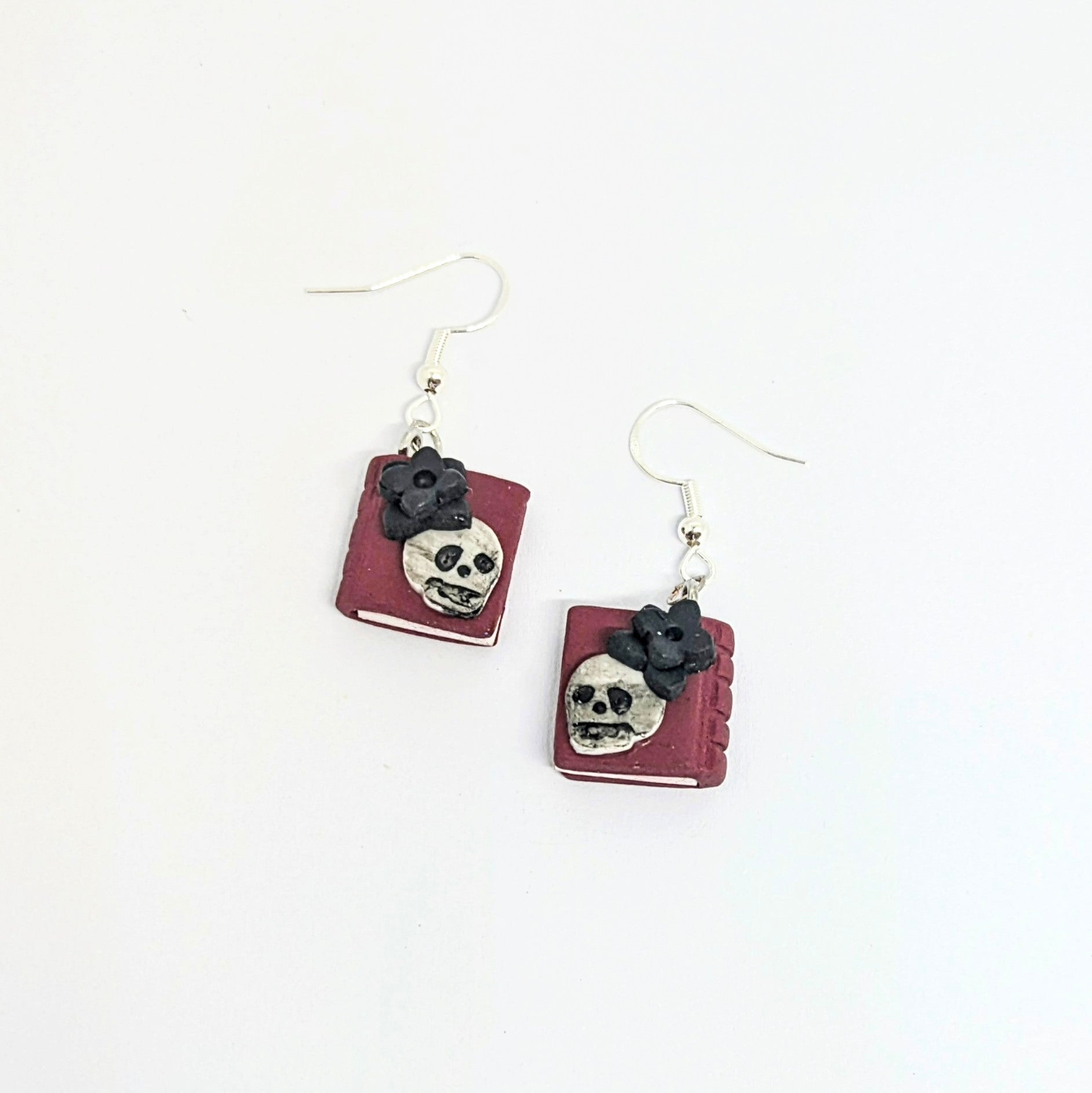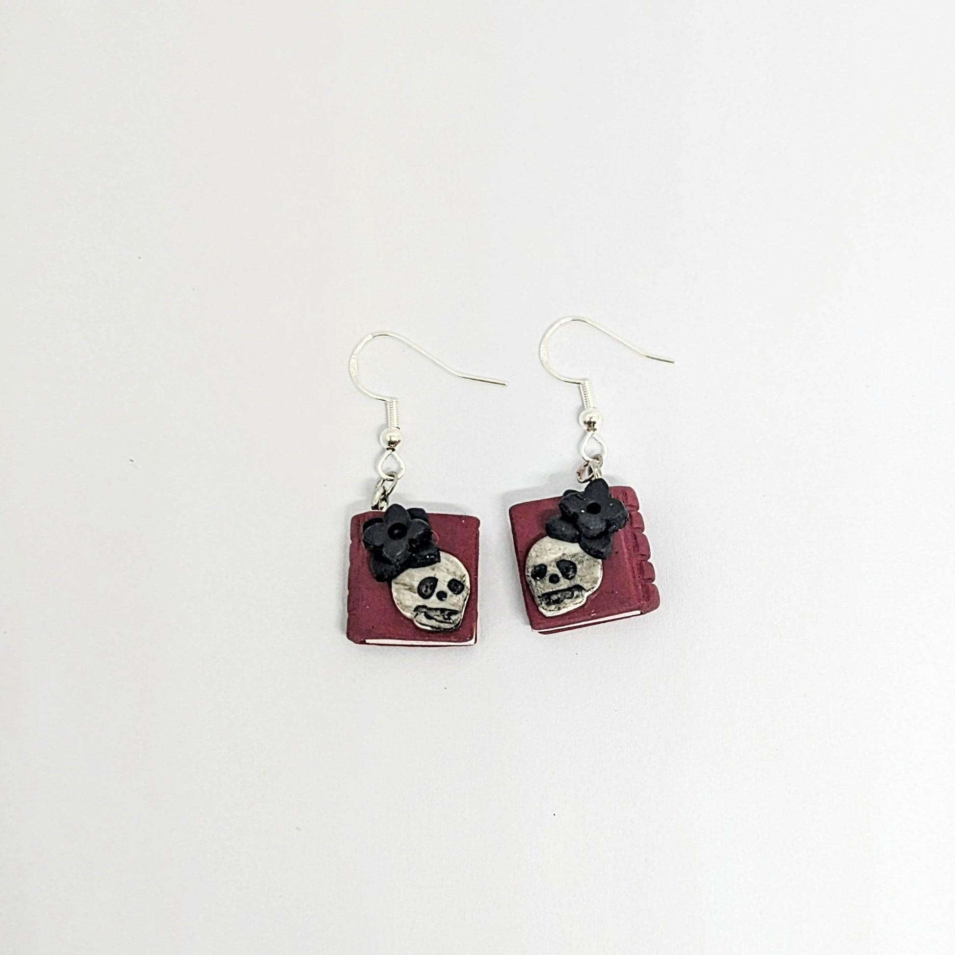 Perfect for any book-loving spooky soul, these delightfully dark dangles bring a touch of gothic charm and to your look. Handcrafted miniature books, each adorned with a skull and flower, they’re the perfect mix of mischief and whimsy—ready to add a subtle, spooky personality to any outfit.