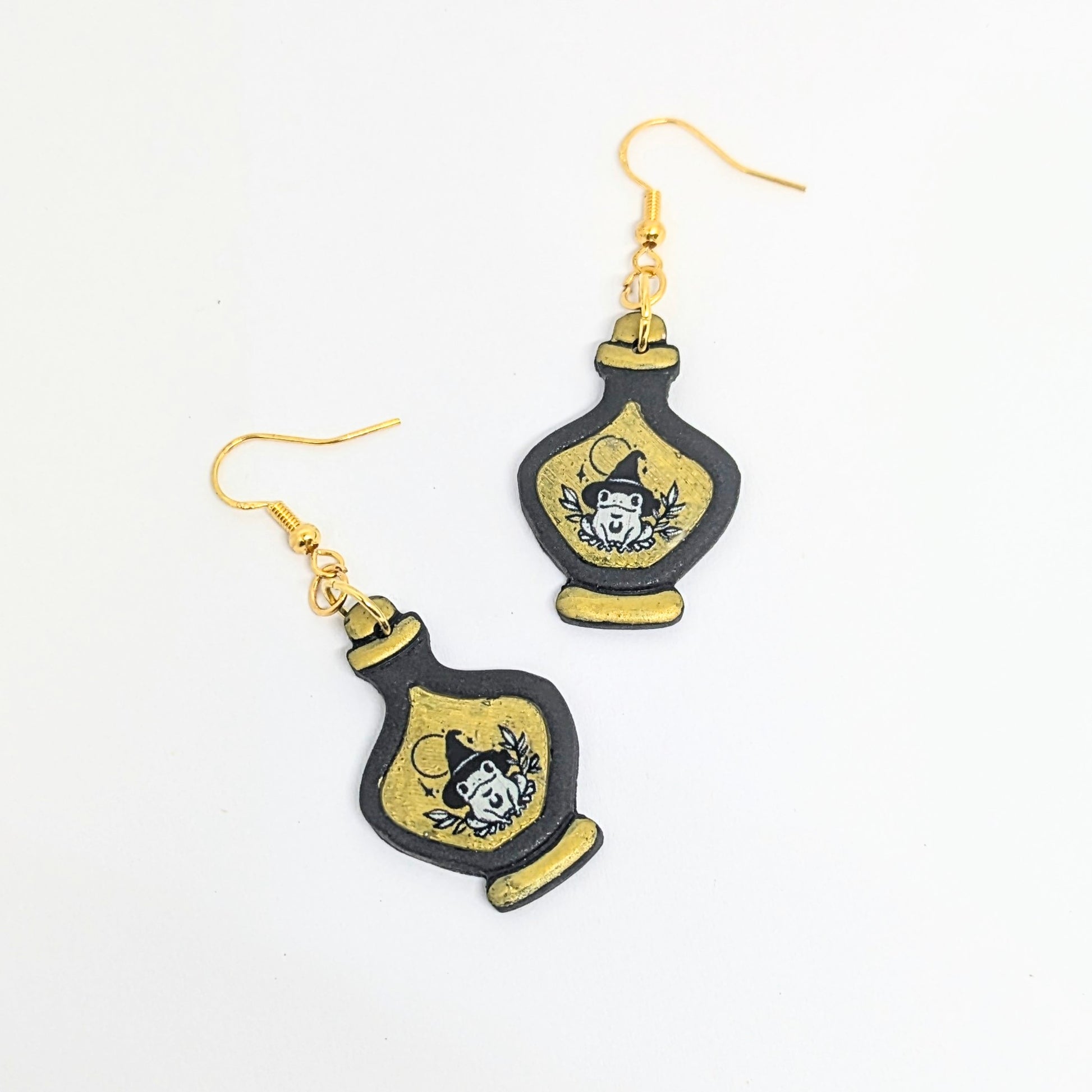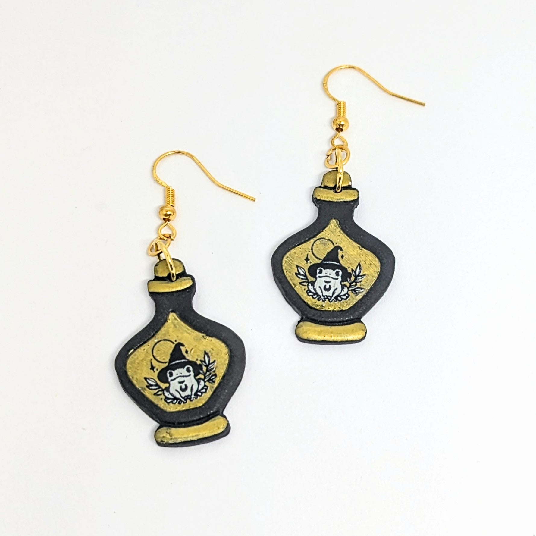 Hop into spooky season with these delightful dangles, with a golden colour and featuring the most adorable little frog, they add plenty of personality to your outfit.